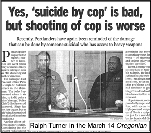 with the March 14 editorial "Yes, 'suicide by cop' is bad, but shooting of cop is worse." The